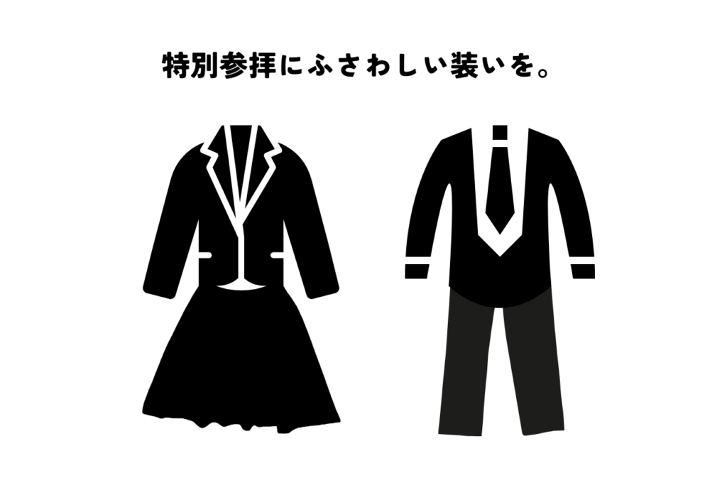 もし初めて参拝される方で服装に迷っているなら、可能であれば、ブラックフォーマルで参拝されることをおすすめします!