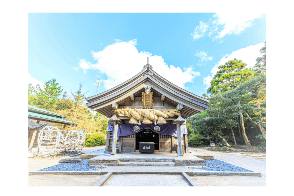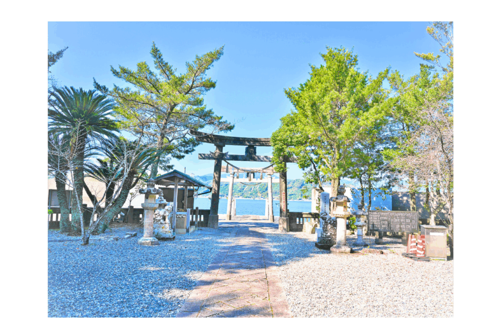 参道の正面には浦ノ内湾が広がり、まるで海へ向かって祈るような配置。夕日の時間帯は特に神秘的で「縁を結ぶ絶景スポット」としても人気があります。