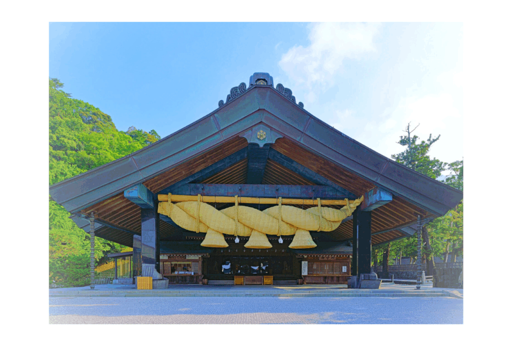 神社といえば?の質問に、多くの人が思い浮かべるののではないでしょうか。巨大なしめ縄が特徴的な日本一の縁結び神社の「出雲大社」です。「大国主大神(おおくにぬしのおおかみ)」が国造りを成し遂げた後、天照大神に国土を譲る「国譲り」の神話で登場する場所です。