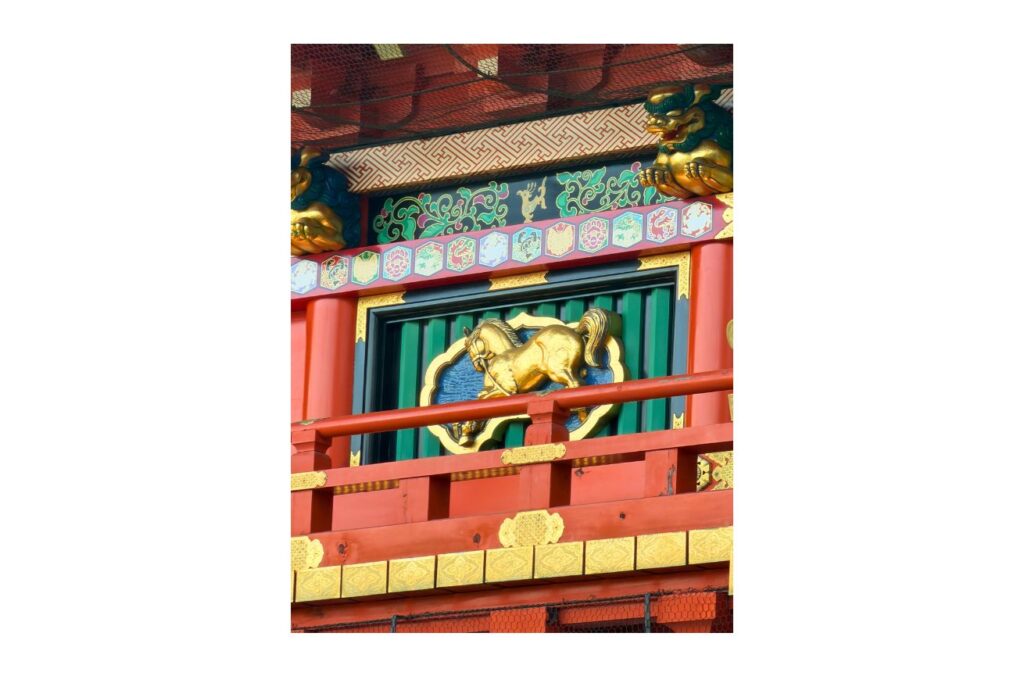 境内の随神門には、その神事を表したといわれる「繋ぎ馬」のモチーフが彫られているので、こちらもぜひチェックしてみてください。