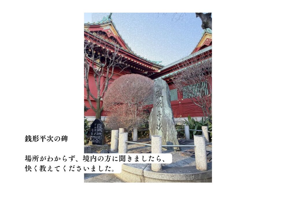 銭形平次が神田明神下の長屋に住んでいたという設定だったため、日本作家クラブさんによって作られたそうですよ。寛永通宝がモチーフになっていて、実は金運アップの隠れスポットと言われています。見逃さずに参拝してみてくださいね。