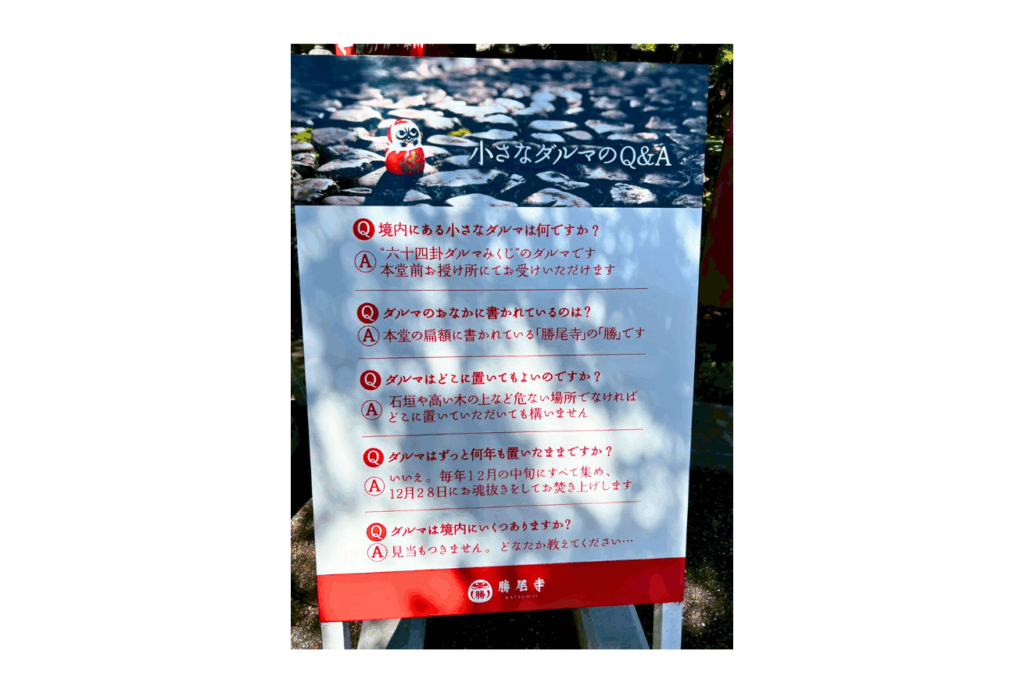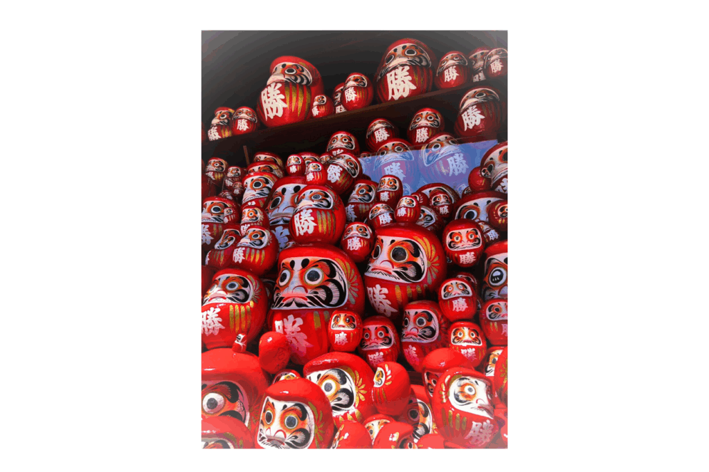 また、元はダルマとは関係のない寺院でしたが、勝負運向上を願う様々な願いを持つ人たちが「勝ちダルマ」を奉納したことから、境内には多くのダルマが並ぶようになりました。