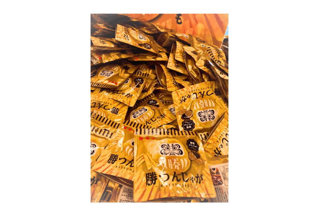 勝尾寺さん、お土産もすごいです。勝ちダルマの形をしたパッケージのクランチチョコに、ラムネ缶。UHA味覚糖とコラボした勝ちグミ。さらに、燻製トリュフ味のポテトが入った勝つんじゃが。グッズもすごいです。クリアファイルや根付は当然のこと、スマホホルダーやアクスタなど、本当にたくさん!そして、ここでも外国人参拝者の方たちが、かごいっぱいに爆買いをしていました。