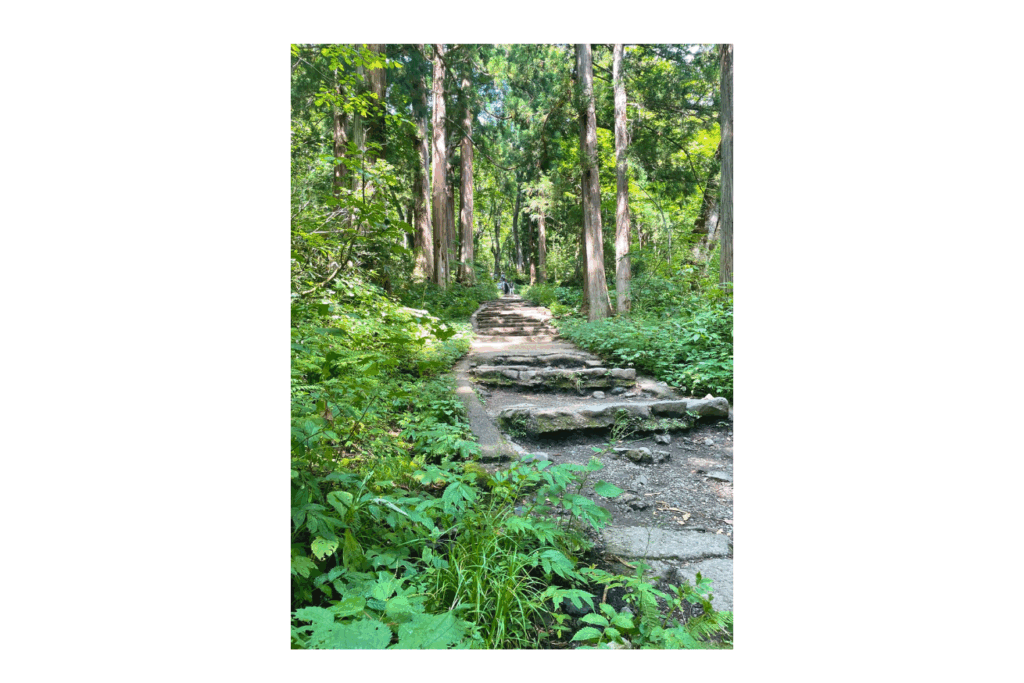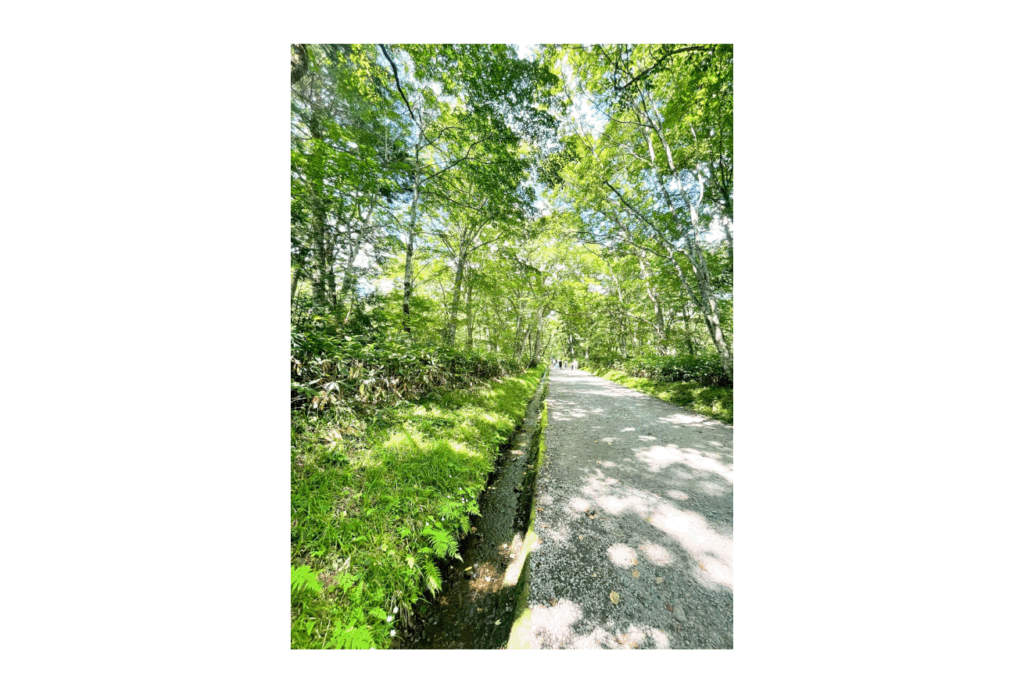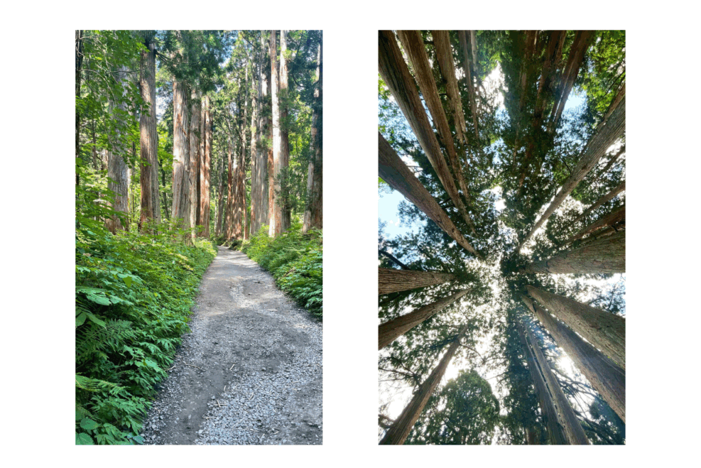 杉並木の間、とにかく自然と緑に癒されウォークです。