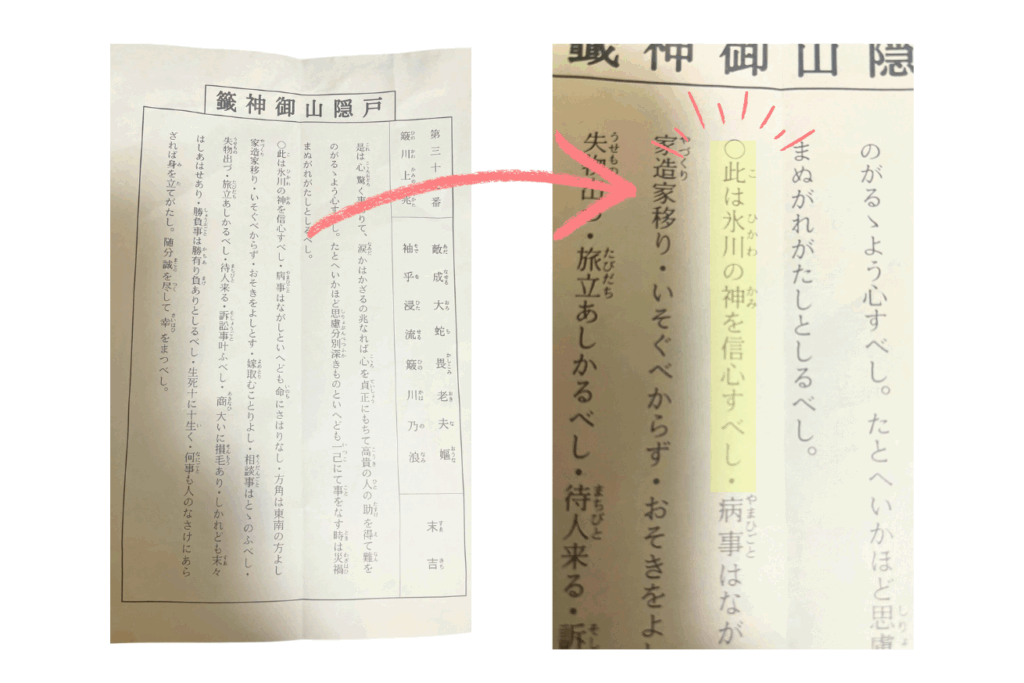 戸隠神社の御神籤は社務所で年齢を言いまして、中からひいた物を渡してくれるんです。
