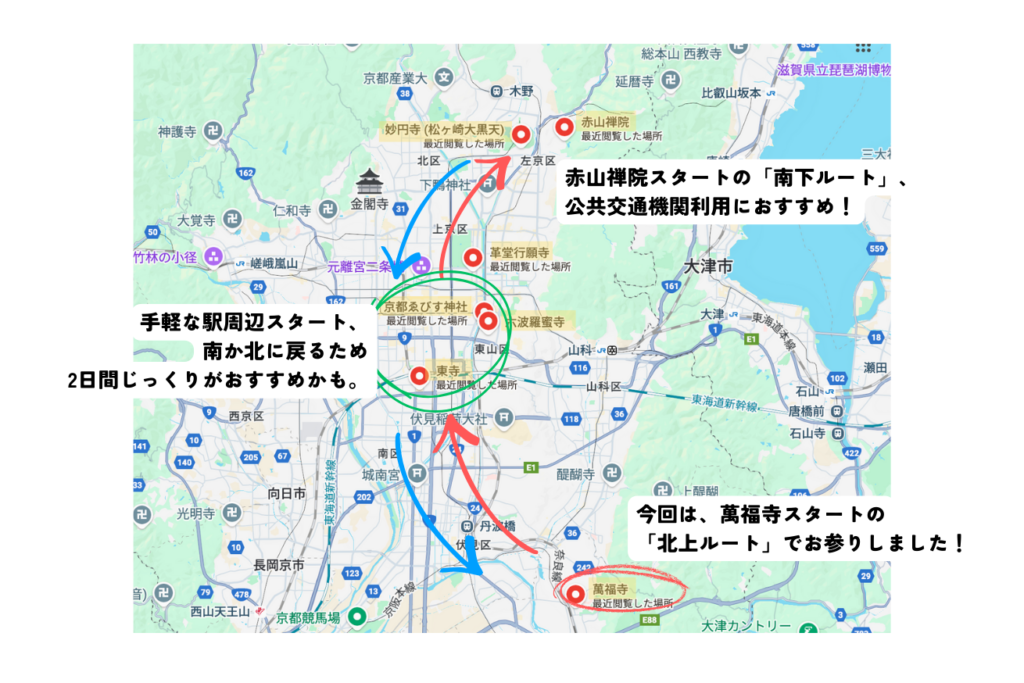 ※北上ルートの場合、松ヶ崎大黒天からタクシー利用がおすすめです。
