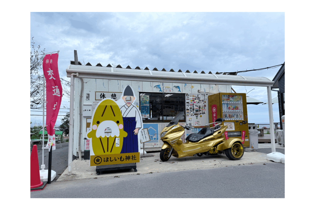 ご由緒を見たところ、創建は令和元年。あ、めちゃくちゃ最近でしたね…ただ、その思いはとてもステキで、「日本一の干し芋作りに向けて、たくさんの人に干し芋を知ってほしい」という活動の一環として、黄金のほしいも神社を創建したそうです。