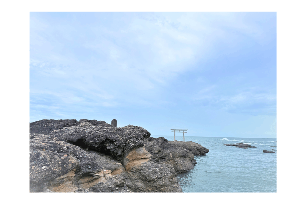 社殿がある場所から少し離れた海の中に立つ鳥居は、茨城県の中でも最強と言われるパワースポットであり、SNS映えスポットとしても知られています。