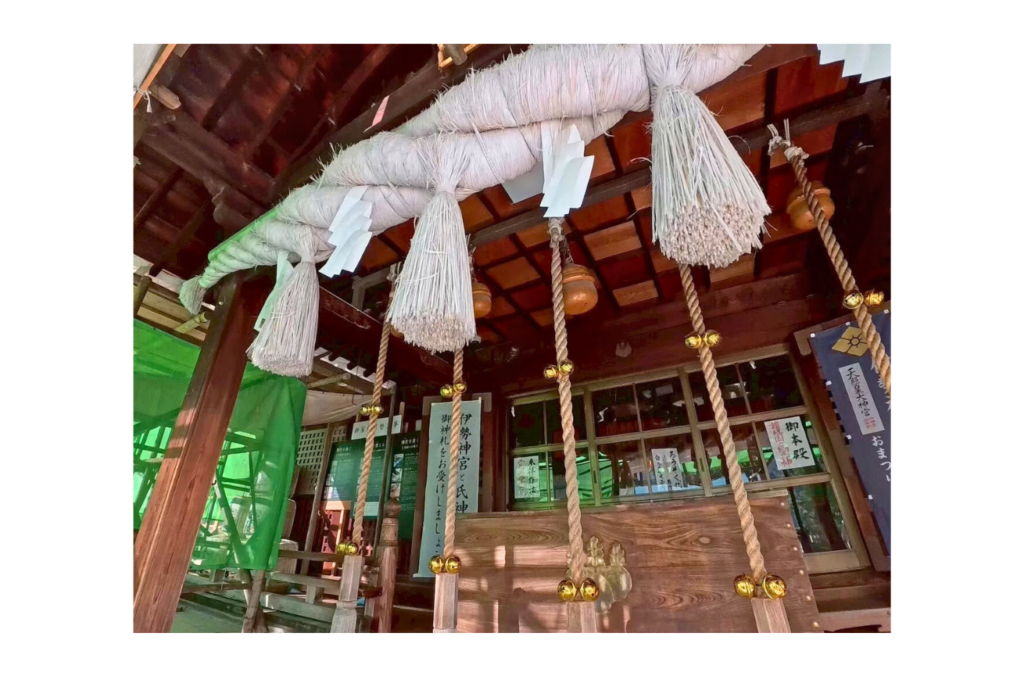 正面から入ると、随神門からまっすぐ参道が伸びています。進んでいくと、今度は二つの鳥居が並んでいます。左手の鳥居には「田村神社」と書かれていて、こちらの先が、本殿です。伺った時、本殿は改装中でした。それにしても、ここまでは本当に、普通の神社に見えます。