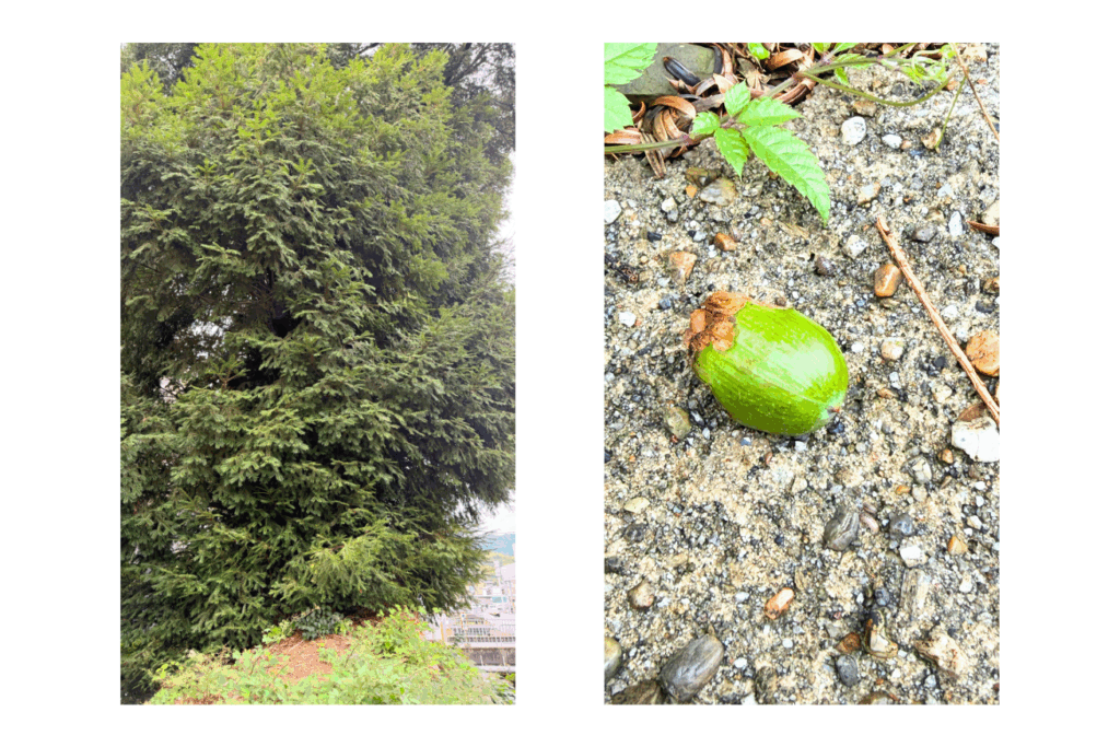 残念ながら私有地のため近づくことはできませんでしたが、近隣にはかやの実が落ちて、アーモンドのような形をした種を見る事ができ、感動!