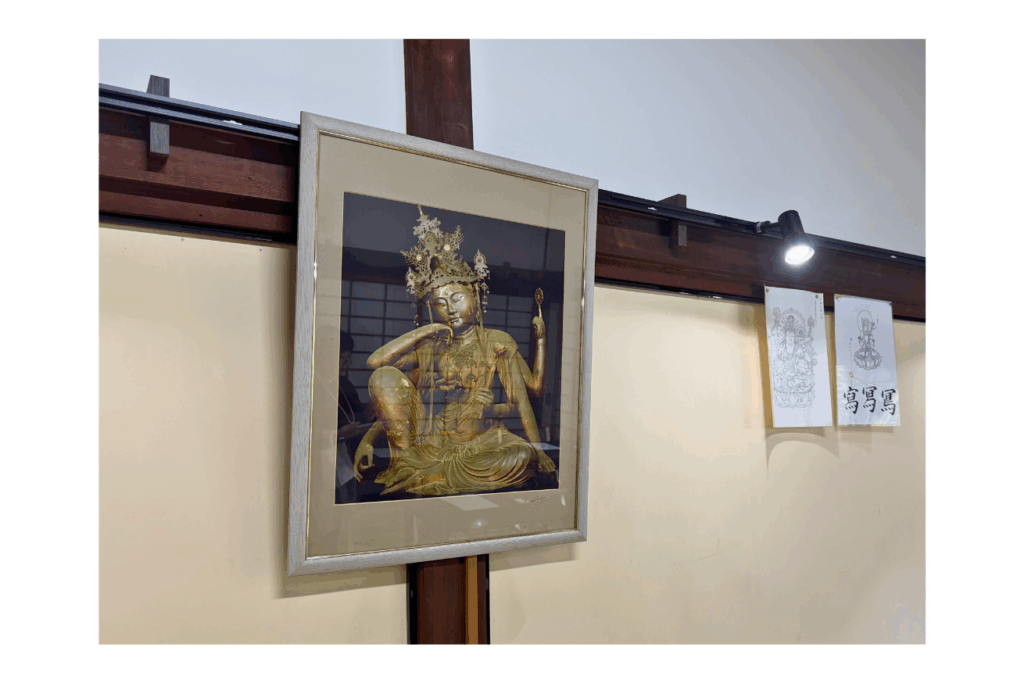 建物内では写経と写仏ができて、ちょうど筆者たちがご案内いただいている時も、写仏にいらっしゃった女性とすれ違いました。特定日以外は予約なしでもご対応いただけるとのこと。