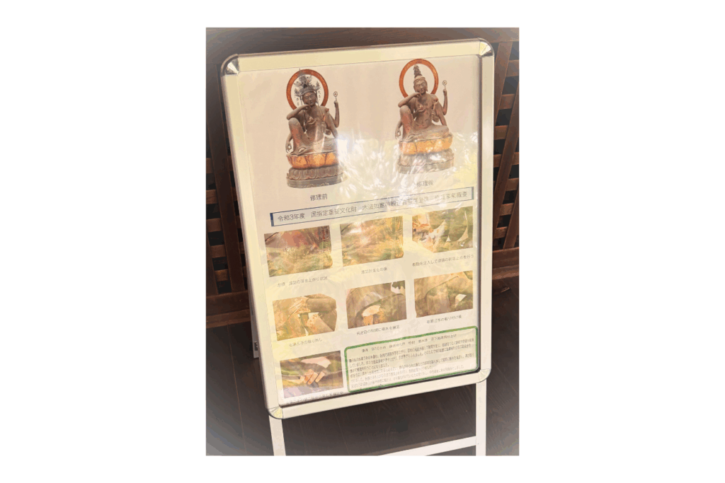 実は、今月11月に特別公開されています。残念ながら、当日はまだ公開前だったので、お会いすることは叶いませんでしたが、本殿にある改修時の様子などのパネル展示で楽しめました。
