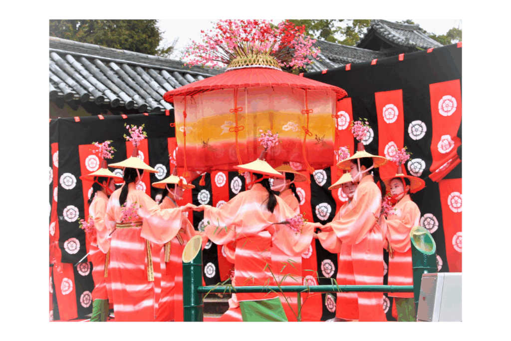 特に春は梅の名所としても有名で、見ごろである3月には子どもたちが咲き始めの梅の色に似た“はねず色”の衣を着て舞踊る、“はねず踊り”が奉納されます。